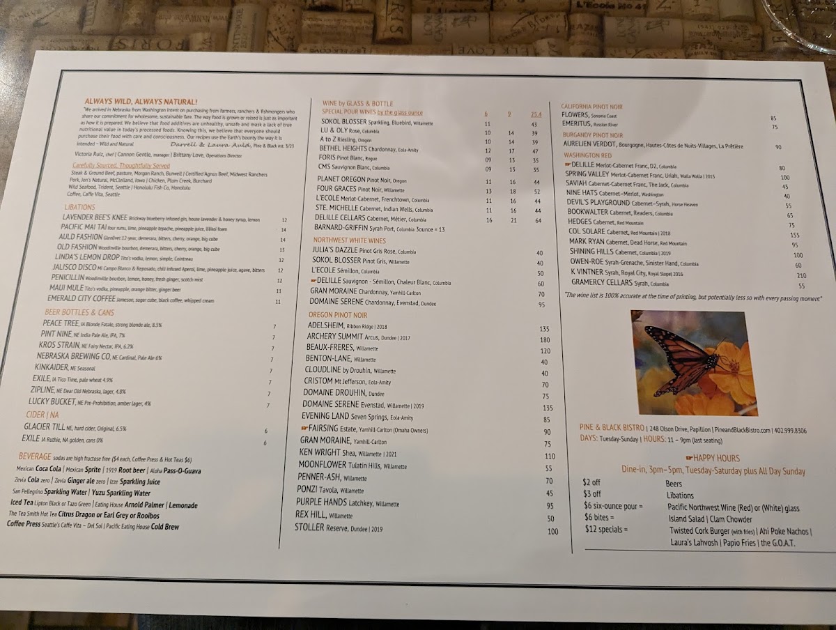 Welcome to Pine and Black Bistro, a hidden gem located at 248 Olson Dr in Papillion, NE. This enchanting bistro offers a cozy, welcoming atmosphere perfect for both casual dinners and special occasions. The menu reflects an exciting blend of innovative dishes inspired by fresh ingredients and bold flavors.